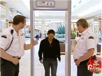 Sicherheitskontrolle mit Metalldetektor in einem Einkaufszentrum